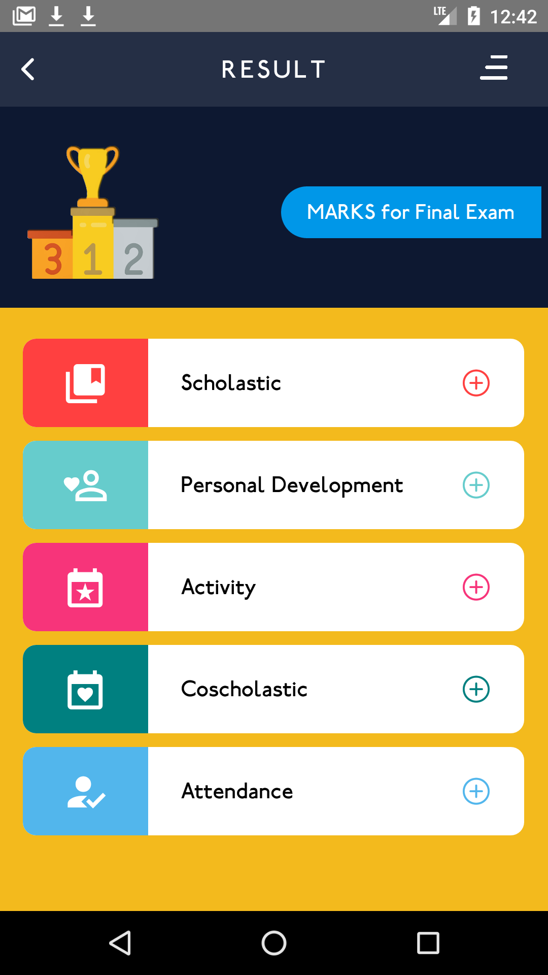 Everything related to student’s attendance comes under this segment. Teachers, students as well as parents can log in at any time to check the attendance history.